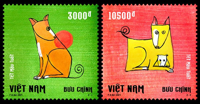 In the spring, VOV5 accompanied stamp collector Pham Hao to visit the studio of artist Pham Ha Hai, the author of the Year of the Dog Tet stamp set.