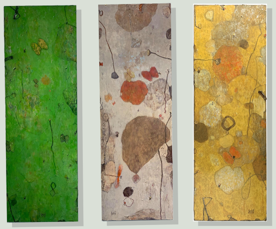 The paintings "Season Diary #01, #02" (created in 2019) and #03 (created in 2020), acrylic on canvas, measuring 120 cm in height and 40 cm in width
